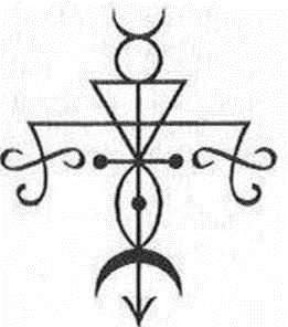 É também a letra da cruz, retratada na sua forma primitiva. do Aleph-Beth, sendo em seu aspecto Qliphóthico não a cruz elementar da matéria sobre a qual o Espírito é pregado, mas em vez disso uma encruzilhada abrindo o ponto através do qual o Espírito pode escapar da sua crucificação dentro dos elementos Assiáicos do mundo caído da matéria.