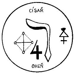 Yod acima e ao lado da Baqueta representação do fogo e da autoridade divina do comando, o mundo de Aziluth ou ainda o mundo dos arquétipos, e graças a Taça que representa o elemento agua, sabemos que a ponta direita é a sequência e representa o mundo de Briah do mundo formativo ou da criação, a próxima letra na sequência é Vav ao lado da espada que é um naipe e ferramenta mágica do ar, que também representa o mundo de Yetzirah, o mundo formativo e por fim nos temos ultimo He ao lado da moeda ou Pantáculo que são relacionados ao elemento terra, a realização material, ou ainda o muito material.