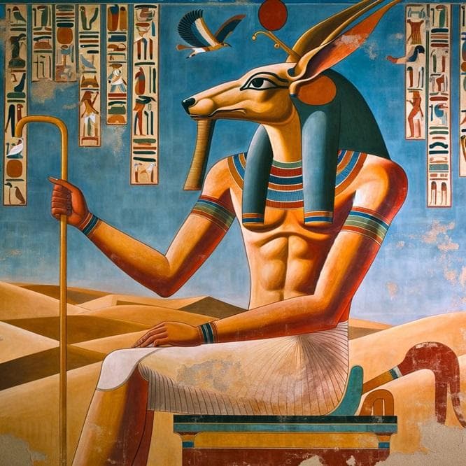 Set é um arquétipo do Adversário, o Deus da Tempestade e da Mudança, o princípio da transformação dinâmica. Ele é uma antiga divindade egípcia, originalmente o deus do deserto, os raios abrasadores do sol e o patrono dos forasteiros. O significado exato de seu nome é desconhecido, mas muitas vezes é traduzido como “aquele que deslumbra”, “pilar de estabilidade” ou “aquele que está abaixo”. Como um deus do deserto, Set estava relacionado com tempestades de areia e poderes mortais do sol. Por causa do clima desértico extremo, ele era considerado uma divindade muito poderosa, um dos principais deuses em todo o panteão, e ele também era o patrono da dinastia hicsos que o adorava como o deus principal. Seus outros nomes eram, por exemplo, Setesh, Sutekh, Setekh, Seti, Suti, Set-Hen e Smai. Por causa da palavra “Tesherit”, que em egípcio significa “deserto” e é muito próxima da palavra “Tesher”, que significa a cor vermelha, Set passou a ser associado a tudo o que era vermelho – deserto vermelho, sol vermelho, chamas vermelhas. , e cabelos ruivos com os quais ele era frequentemente retratado na arte. Sua representação mais familiar, no entanto, é um animal desconhecido ou uma besta tifônica com focinho curvo, orelhas quadradas, cauda bifurcada e corpo canino, que não tem semelhança com nenhum animal conhecido.