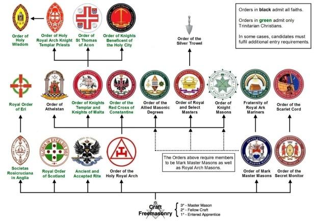Este é um quadro que ajuda a situar a Ordem dos Maçons de Marca na constelação de ordens de pedigree anglo-saxão.