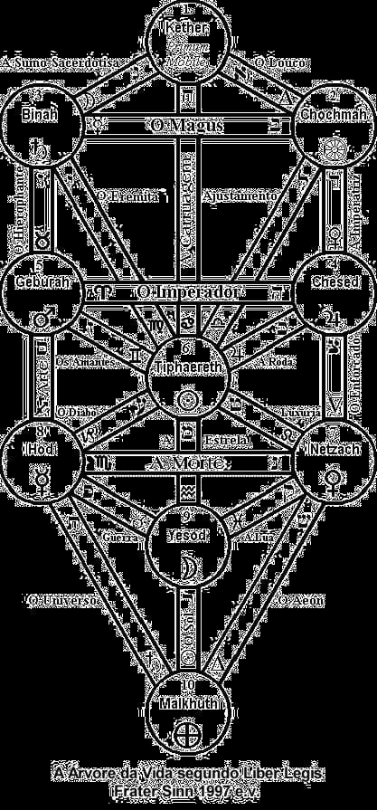 Isso implica a regência ordenada de diversas forças. O branco e o negro são os dois sóis do horizonte superior e inferior, ou a altura e a profundidade, o Forno infernal de Amenta e o Sol supernal da Árvore frontal (Tifareth). A força solar (Heru-Ra-Ha) está aqui implicada, pois o branco e o negro são Ra-Hoor-Khuit e Hoor-Paar-Kraat e não é por acaso que as iniciais destes deuses somam 640, o número de Characith610. O sétuplo véu é aquele da Deusa das Sete Estrelas que é diáfano em sua luminosidade. ‘Ele’611 reflete o Louco, que é a Luz Oculta que é ‘A’ entre I e O (Isis e Osíris). ‘A’ é Apophis, o Deus Set em sua forma Ofidiana. Ele é a luz que tinge o graal da deusa [que é] drenado pelo Adepto.