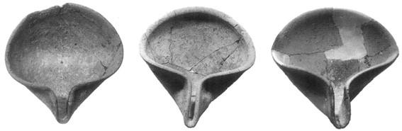 Durante séculos nada mudou na técnica ou estética deste tipo de lâmpadas, achado em abundância nos sítios arqueológicos de Tel Dan e Hazor. Por exemplo, na tumba duma família de metalúrgicos do fim da Idade do Bronze (Tomb 387) havia sete iguais.[22] Veja três fotos abaixo: