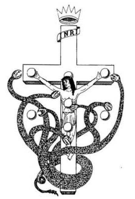 Na parte inicial desse ritual, o candidato é amarrado simbolicamente a uma cruz (que simboliza os elementos). Essa subordinação voluntária do ego ao Eu Superior finalmente libera o ego do ataque violento dos complexos inconscientes. Isso é simbolizado pela queda das cabeças do dragão do Sephiroth (mostrado abaixo)