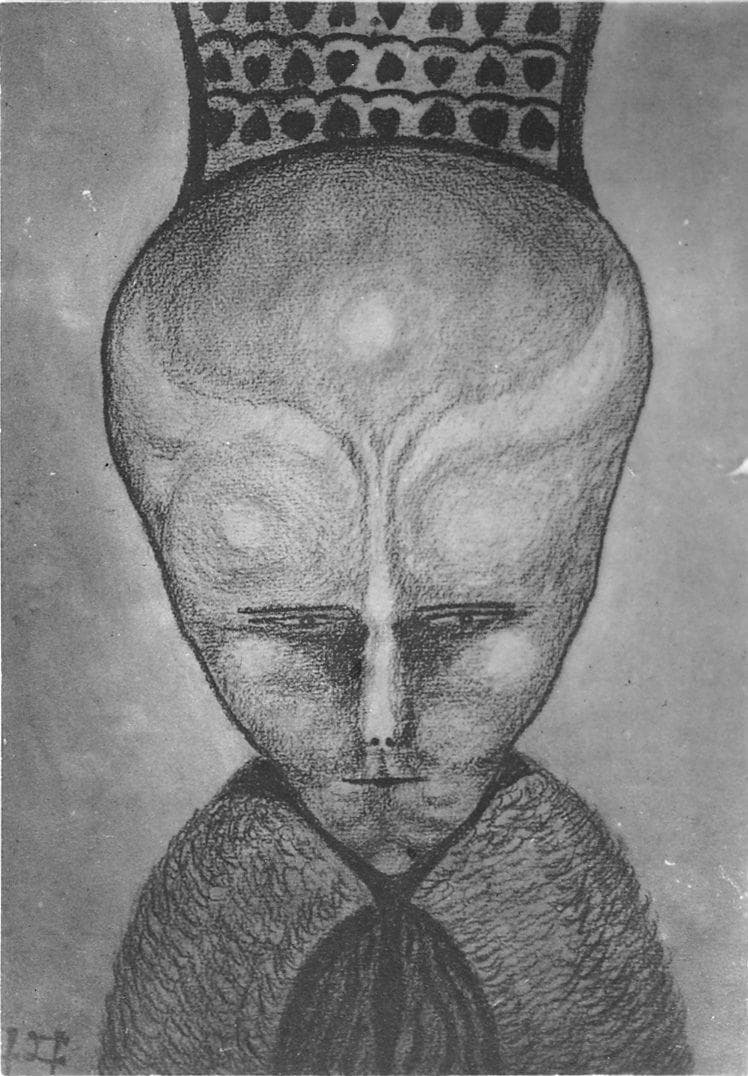Comecei pedindo uma visão contendo uma mensagem. Ouvi pela primeira vez água borbulhante e vi uma casa de fazenda escura entre árvores e campos verdes. A casa e outras coisas desapareceram e uma yoni escura apareceu exatamente onde a casa estava. Perguntei então de onde virá uma mensagem? Imediatamente soldados armados apareceram vagando pelo local, e um rei em um trono onde a casa ficava. Pedi então novamente uma mensagem e vi um ovo no qual havia muitas pequenas circunvoluções de alguma substância semelhante à carne que formaria alguma coisa. O ovo foi colocado em forma oblonga como em um quadro. Ao seu redor havia nuvens, árvores, montanhas e água, chamados de ‘quatro elementos’. Um camelo apareceu na frente de toda a imagem. Em seguida, tentei descobrir quem era o rei. Ele se parecia mais com o Prof. Shotwell do que qualquer outro. Ou seja, ele era ‘simples, democrático’ e muito culto e fino. Ele certamente não era um rei pertencente a nenhum reino limitado pelas fronteiras de um país, mas ele era um rei dos homens, ou um rei do mundo. Perguntei seu nome e a palavra ‘Ham’ apareceu entre o ovo na figura oblonga e os soldados ao redor do rei.
