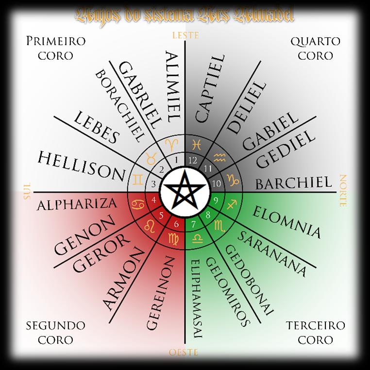 Observações: Segundo o Lemegeton, os anjos deste sistema não possuem selos, então basta apenas realizar as invocações no período correto, utilizando o almadel da cor indicada e posicionado no ponto cardeal de cada estação.