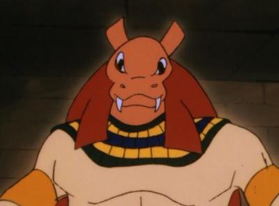 Tenho que reconhecer o mérito da Full Moon Entertainment; pelo menos eles não escolheram o caminho mais preguiçoso de optar pela ideia de que “Set é uma cobra gigante”. Mas essa versão específica do Grande Vermelho é tão bizarra que não consigo nem imaginar de onde ela veio. Pelo menos o Sutekh em Doctor Who realmente se parece com Set (completo com aquelas orelhas retangulares bonitinhas Dele). Mas como diabos eles tiveram a ideia de um Sutekh careca, pelado e com olhos brilhantes? (E alguém que só consegue fazer com que bonecas de 3 polegadas de aparência estranha cumpram Suas ordens?)