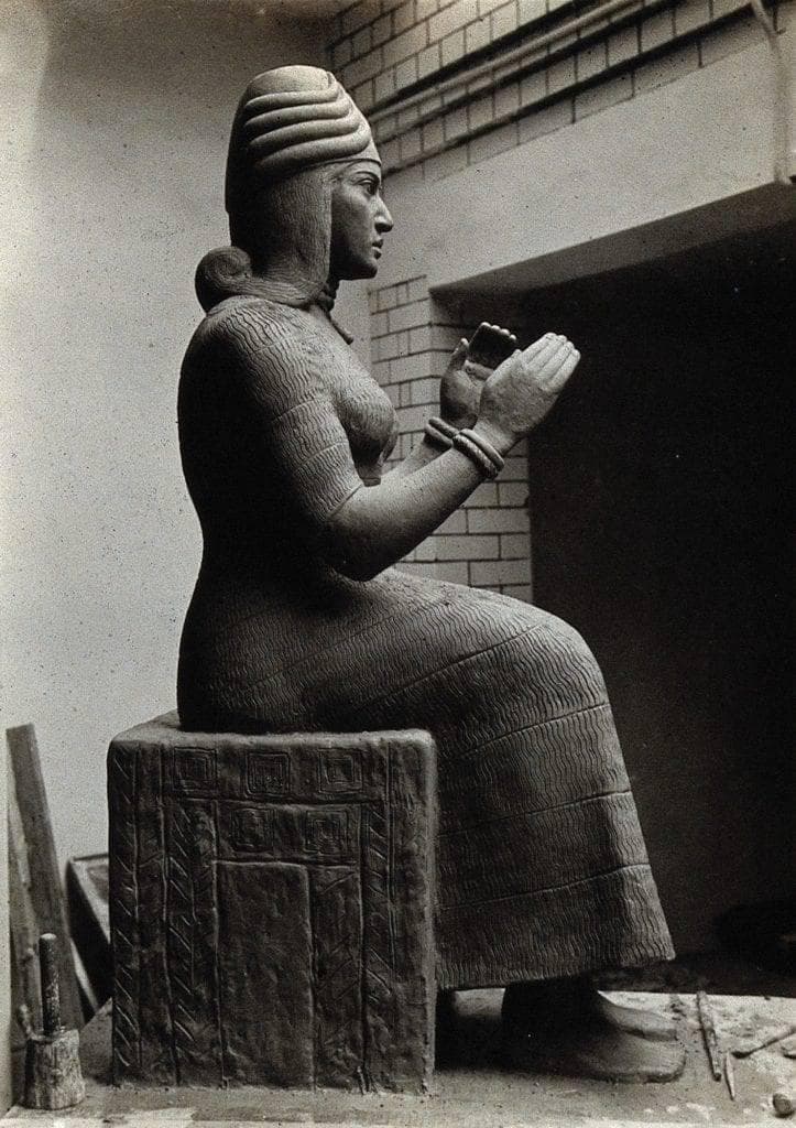 Assim, após recitar o texto da prece, o que eu recomendo fazer é colocar os braços na pose de suplicante (acima) e entoar de modo cantado esses três nomes de Marduk. Depois unir as mãos na pose de adoração que também é típica das estátuas sumérias. Feito disso, você pode prosseguir com os trabalhos normalmente. Para mim, essa prece faz parte de um trabalho de rotina, usada antes de fazer as oferendas diárias de incenso e devoções mais específicas.