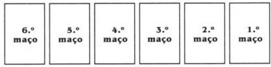 Tomam-se, então, esses pacotes sucessivamente, distribuem-se as cartas que eles contêm em seis fileiras, que serão, necessariamente, de comprimentos desiguais.