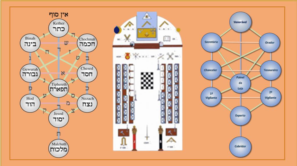 Na Cabala, como já foi dito, os planos de construção do universo e o seu resultado são demonstrados nos chamados Quatro Mundos da Criação e no desenho mágico-filosófico da Árvore da Vida, ou Árvore Sefirótica, símbolo de extraordinário conteúdo esotérico, que se presta às mais diversas analogias e ilações, unindo a mística das antigas religiões do Oriente com as modernas descobertas da física atómica [13] e que, por uma estranha coincidência, é reproduzida na planta do Templo maçónico.