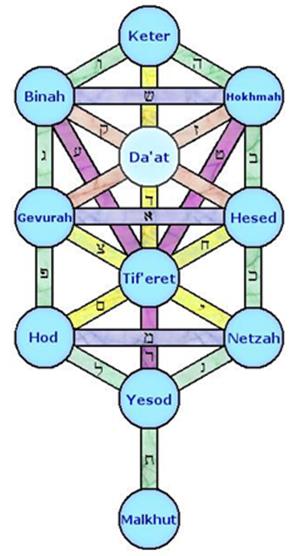 * Uma décima primeira sephira foi introduzida mais tarde, Daath, o Conhecimento.