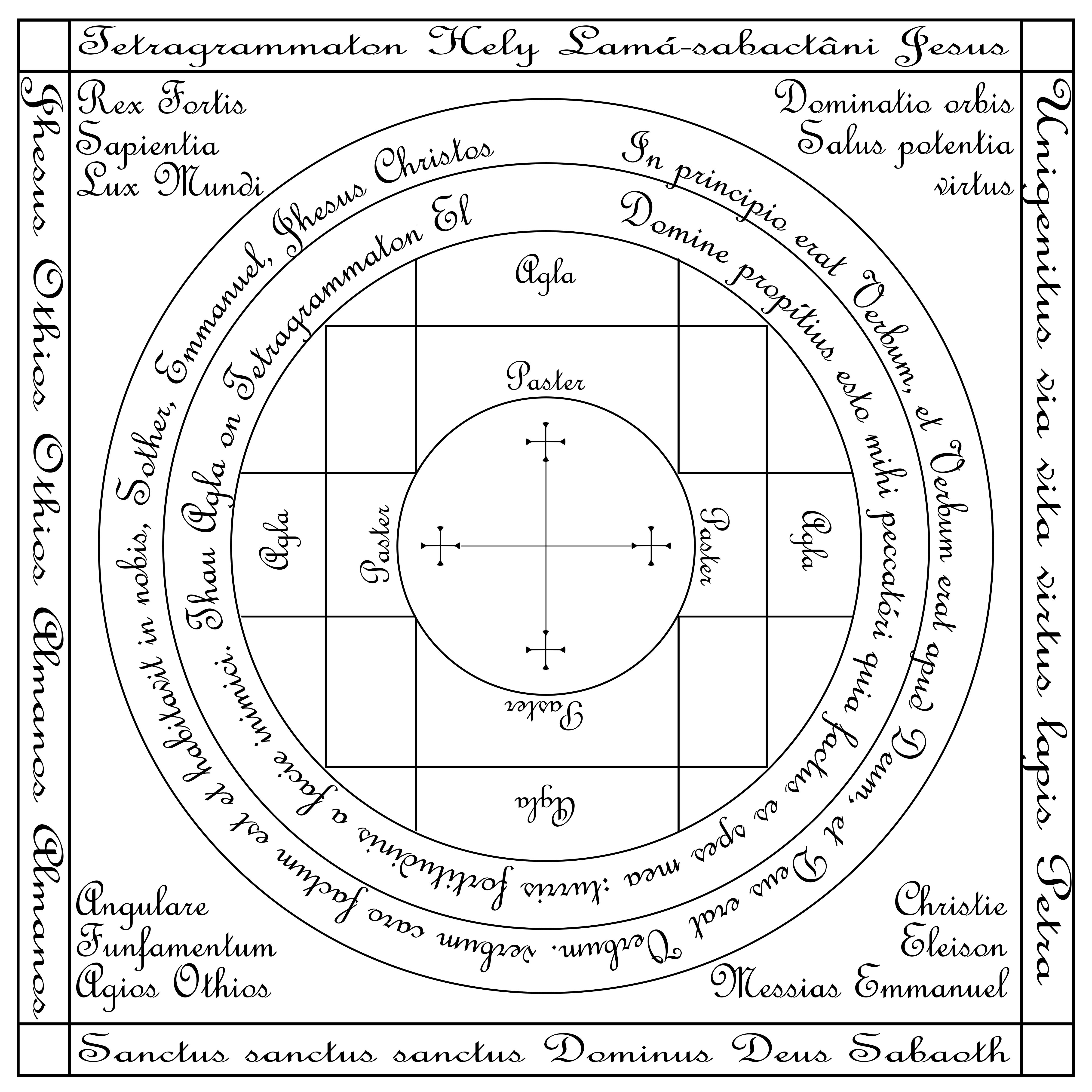 Ó Todo-Poderoso Adonay, Araton, Ossul, Heloy, Heloe, Helion, Essercon, sadon, Deus, Deus, Infinitus, Jesus, Christus; sê meu ajudador, para que este sangue tenha poder nestes meus feitos.