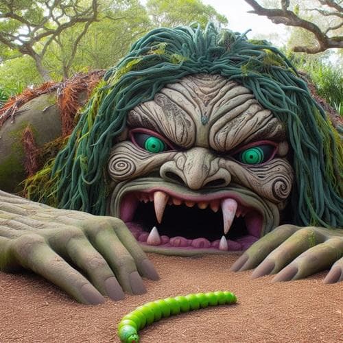 Hine nui te Po: Uma gigante feminina horrenda, com cerca de onze pés de altura, dormindo no chão com as pernas relaxadas. Ela tem o corpo de uma mulher humana, com algas marinhas no lugar do cabelo, olhos feitos de pedra verde e a boca de uma barracuda.