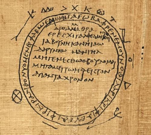 [5] Ritner (1995) questiona o uso do nome “Papiros Gregos Mágicos” para se referir a esse corpus. Ele argumenta que, apesar dos textos estarem em língua grega, não necessariamente refletem a tradição grega. O uso da palavra “gregos” no título estaria negligenciando a enorme influência egípcia nesses feitiços. Desta forma, um termo mais adequado para se referir a esses textos seria “greco-egípcio”.