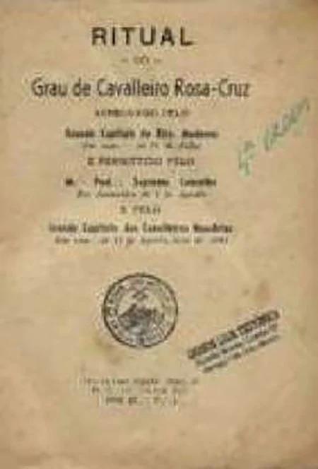 [35] Ritual / do / Grau de Cavalleiro Rosa-Cruz / approvado pelo / Grande Capitulo do Rito Moderno / Em sess∴ de 21 de julho / E permittido pelo / M∴ P∴ Supremo Conselho / Em Assembleia de 1 de Agosto / e pelo / Grande Capitulo dos Cavalleiros Noaquitas / Em sess∴ de 11 de Agosto, tudo de 1891 / Selo do Grande Oriente do Brasil / Typ. da Casa Vallete-Carino, 63 / Rio de Janeiro / 1935 (E∴ V∴).