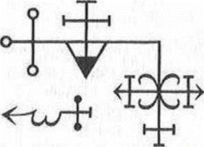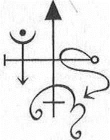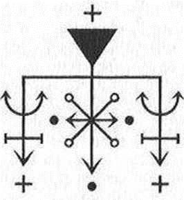 É também a letra da cruz, retratada na sua forma primitiva. do Aleph-Beth, sendo em seu aspecto Qliphóthico não a cruz elementar da matéria sobre a qual o Espírito é pregado, mas em vez disso uma encruzilhada abrindo o ponto através do qual o Espírito pode escapar da sua crucificação dentro dos elementos Assiáicos do mundo caído da matéria.