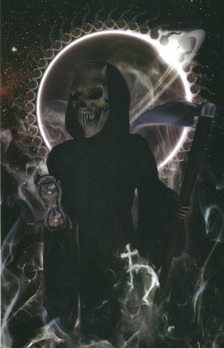 Formas de deus do poder negro são Legião; se a forma de um simples esqueleto de manto com uma foice não simboliza adequadamente o “eu-morte”, então formas como Charon, Thanatos, Saturno, Chronos, a bruxa Hécate, irmã negra Atropos, Anúbis, Yama e Kali podem servir.