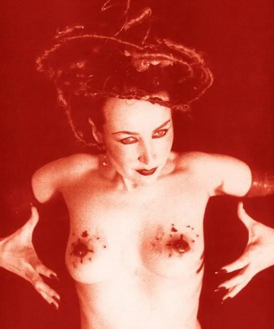 Por muitos anos, parecia completamente contra-intuitivo escrever sobre o sistema em desenvolvimento, pois seu núcleo interno não pode ser comunicado verbalmente. Assim, a partir de 1990, criei projetos que comunicassem aspectos do sistema usando performance ritual. Eu senti que este era o meio mais preciso para articular a corrente, além do foco mais direto dos trabalhos mágicos pessoais. O projeto Mother Destruction foi lançado em 1990 com o lançamento do álbum ‘Seething’. O título refere-se ao erótico-cinético, energia no centro do sistema 156. Desenhei um sigilo para o projeto que apareceu na capa do álbum que ilustra o espectro cinético setenário que anima a magia de Babalon e o corpo da sacerdotisa (ilustração abaixo). O primeiro álbum apresentava práticas mágicas que usavam correspondências rúnicas em alinhamento com as emanações ofídias e bioeróticas de 156 e fundiam as duas correntes com experimentos usando técnicas de seidr (xamanismo escandinavo) e transe156. Esses elementos foram expandidos em rituais dentro do espaço da performance.
