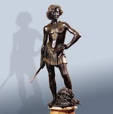 Ele teria sido um garoto (e mais tarde um homem) de boa aparência e graça excepcionais, e os historiadores da arte conjecturaram que ele poderia ter posado para o David de bronze, de cabelos encaracolados e delicado de Verrocchio, descrito por Isaacson como “um menino ligeiramente afeminado e surpreendentemente bonito de cerca de catorze anos “, cujo rosto traz um traço de um sorriso. A identificação é atraente (se não fosse o fato estabelecido de que Isaacson, em última análise, sugere). O mais fascinante, no entanto, é a forma como Leonardo transformou esse charme levemente infantil em um ideal radiantemente puro e sensual de beleza masculina.