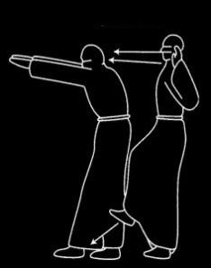 Quando tocar seus pés, coloque rapidamente o pé esquerdo para a frente (cerca de um pé), enquanto projeta o corpo e as mãos para a frente (na altura dos olhos), na postura do “Deus Hórus”. Enquanto isso é feito, imagine o nome subindo com força, poder e brilho, de seus pés enquanto exala de suas narinas.