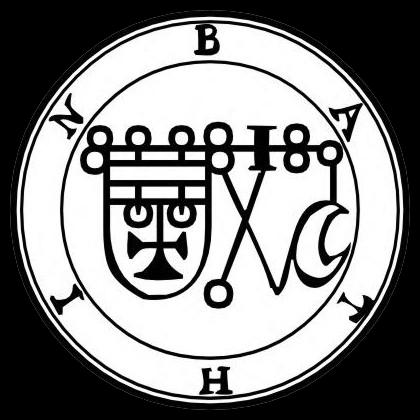 O décimo oitavo espírito é Bathin, Bathym, Mathim, ou Marthim. É um duque poderoso e forte, e aparece como um homem alentado com a cauda de uma serpente, sentado em cima de um cavalo pardo. Conhece as virtudes das ervas e pedras preciosas, e pode transportar homens rapidamente de um país a outro. Ele chefia 30 legiões de espíritos. Seu selo é este que deve ser preparado como acima foi dito.