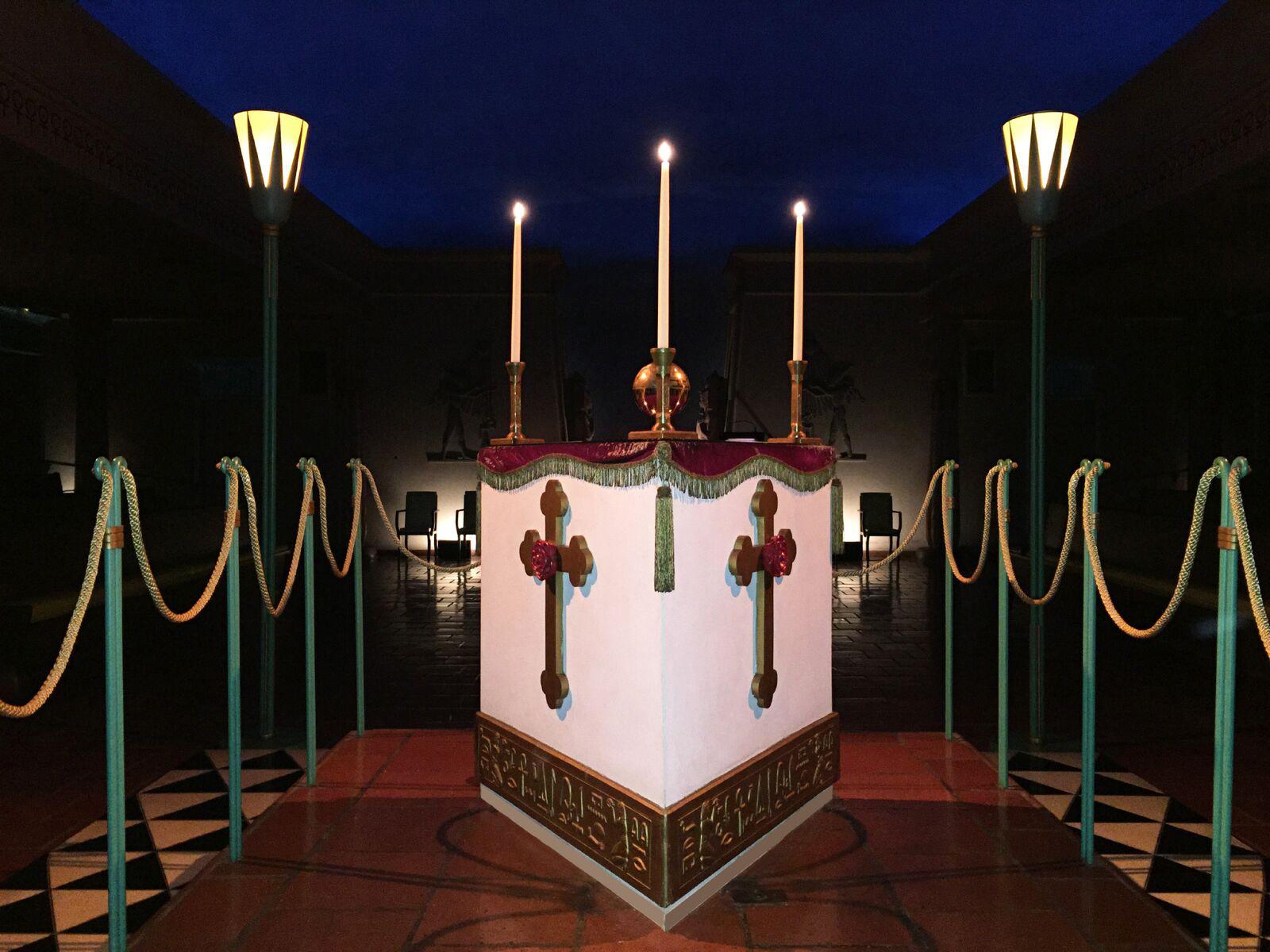 No centro do templo temos o coração e o quinto ponto da loja, o lugar onde todas as linhas se cruzam e onde fica o altar triangular denominado Shekinah, equivalente a rosa da cruz. ‘Shekinak’ é uma antiga palavra egípcia que foi incorporada no vocabulário hebraico com o mesmo simbolismo de ser o fogo, o calor, o fervor, a flama e a luz da presença divina. No templo é também símbolo do poder concentrado da Assembleia de frateres e sorores.