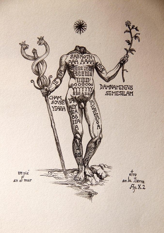 Akephalos, O Deus Sem Cabeça, em arte de Jose Gabriel Alegría Sabogal