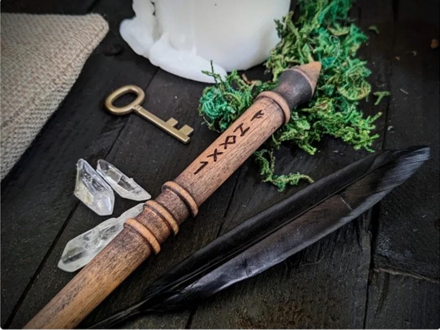 Até certo ponto, a varinha deve se tornar parte do mago. Algumas pessoas recomendam dormir com ela. Outras recomendam carregá-la com você por um período de tempo especificado, muitas vezes determinado por um juramento. Acho essas duas práticas bastante úteis para fazer da varinha uma parte sua. Se você cortar a varinha de uma árvore viva, tente escolher um ramo que precise de poda. Faça uma oferenda para a árvore depois. Não estou completamente certo de que as árvores sentem dor, mas podemos nos beneficiar de praticar a humildade de tal maneira.