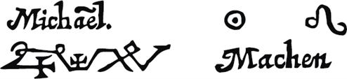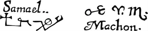 r: Provavelmente uma corrupção de Asher Eheieh (veja Êxodo 3:14, e seguintes). s: Possivelmente uma corrupção de Asher Eheieh; a Goetia de Mathers-Crowley, em qualquer caso, possui este termo.