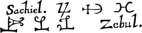 c1: Os sigilos dos Anjos dos sete dias são anteriores ao Heptameron; eles aparecem em algum dos MSS do Liber Juratus.