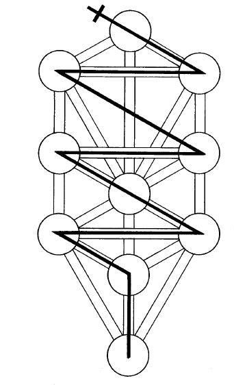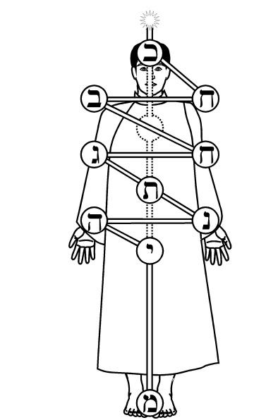 Se quiser, você também pode visualizar a primeira letra hebraica do nome de cada esfera na esfera durante a descida. Ou seja, Kaph para Kether; Heh para Hod; Mam para Malkuth; etc