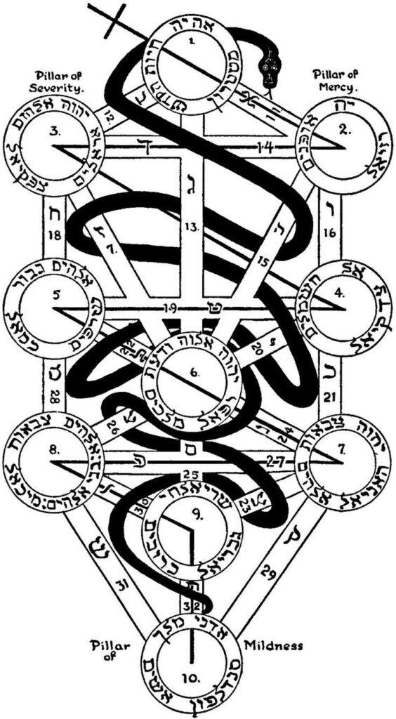 Quando por fim a luz chega em Malkuth, a energia de Mezla inicia o “Caminho da Serpente” em seu caminho de volta ao topo da Árvore permitindo assim a jornada dos 32 Caminhos da Iniciação Cabalística: as 10 Sephiroth da Descida e os 22 Caminhos da Ascensão. Este retorno ficou conhecido pelos cabalistas como “A Serpente Ascendente”, “Fogo Secreto” sendo correlata a noção de Kundalini.