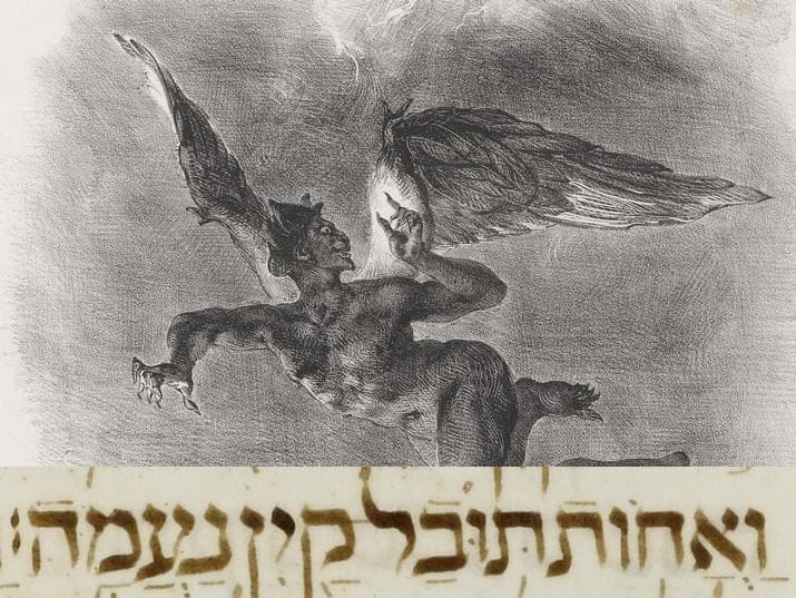 “E a irmã de Tubal-Caim, Naamah, é a esposa de Shomron, mãe de Ashmedai, de quem nasceram demônios que a evocam sempre durante o juramento demoníaco” – Comentário sobre a Bíblia, Rabi Menachem Recanati