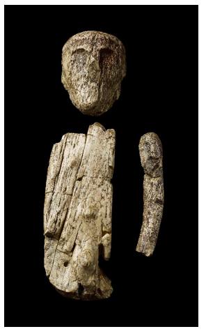 O boneco ou escultura de marionete foi feito com cortes de instrumento de pedra numa peça substancial de marfim de mamute. Três das seis partes do corpo resistiram à erosão. A figura em escala 1/3 possui uma cabeça de 6,7 cm com músculos faciais bem trabalhados para os padrões da época. Pequenas linhas riscadas no queixo e por traz da cabeça representam fios de cabelo. Na parte menos danificada do tronco de 13,5 cm ainda podemos ver o mamilo direito, o umbigo proeminente, o pênis com uma pequena incisão marcando a uretra e também os testículos, todos esculpidos em relevo.