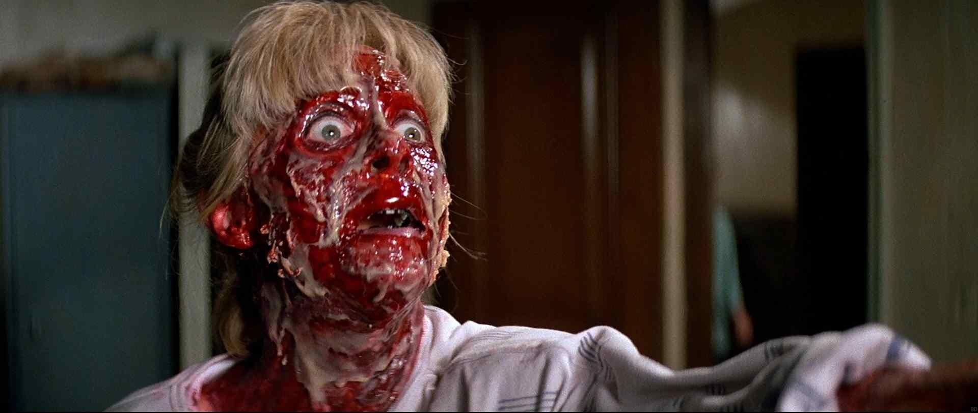 E é nesse ponto do filme que a gosma verde brilhante ABRE SEU PRÓPRIO RECIPIENTE e começa a se borrifar nas pessoas, diretamente em suas bocas. Depois que elas se engasgam com a gosma por um tempo, ela assume o controle total de seus corpos, efetivamente “possuindo-as”. Isso explica o que aconteceu com todos os moradores de rua zumbificados que estavam à espreita do lado de fora da igreja e por que eles matam qualquer um que tente sair. O fato de estar morto também não impede que a gosma possua seus hospedeiros, pois vários dos corpos mutilados dos cientistas também são convertidos em zumbis. A maior parte da gosma é absorvida por um cientista em particular, fazendo com que a pobre senhora entre em coma. Os sobreviventes restantes ficam presos dentro da igreja durante todo o dia seguinte, incapazes de chamar ou enviar alguém para pedir ajuda.