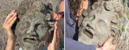 A máscara foi encontrada próxima às ruínas de um monumental portão romano, cuja altura foi estimada em seis metros, parte dum edifício de basalto datado da época do imperador romano Adriano, que reinou de 117 d.C. a 138 d.C. Só por causa da máscara – que não estava lá dentro – os arqueólogos identificaram aquele imóvel como sendo um templo de Pan e, por causa da proximidade do edifício, a própria máscara foi datada naquele mesmo período. Michael Eisenberg declarou à imprensa: