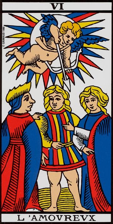 Suponha que algo (alguém? Anjos? Acaso? em suma, o Intangível) atinja os controles do nosso computador/sistema nervoso. Faz-se uma ligação com o gesto que escolhe uma das cartas de que só se vê o verso (daí a importância de um verso de tarot opticamente neutro e que não cristalize nenhum efeito do Ego). Você não pode ir mais longe.