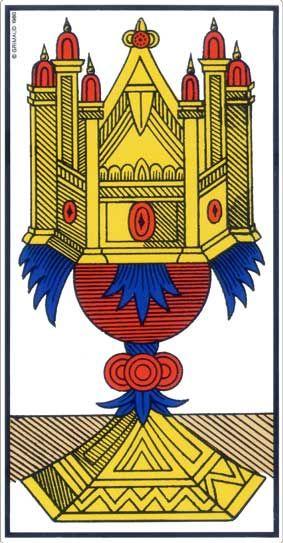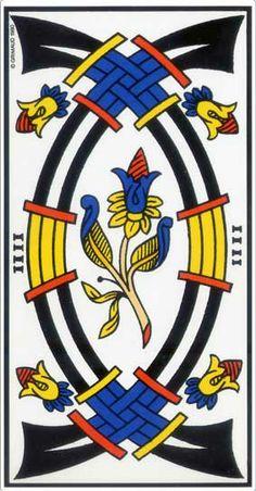 É necessário e suficiente segui-los – e usá-los – para clarear a evolução através de uma simples observação. Existem algumas estruturas desenhadas – não são simples motivos decorativos, embora fiquem assim escondidas aos olhos que não sabem ver. Por exemplo, a série de Copas mostra dois tipos de estruturas, uma vertical e outra curva. Analogicamente, com quais estruturas do corpo humano podemos identificá-los? Sem ir mais longe, qual é o significado da Taça? Para que serve uma Taça? (nada confortável, a do Rei, nem serve para beber; a do Valete não é interessante, seu espaço é muito pequeno; confiscada pela capa, a da Rainha, bem aberta, com um espaço razoável, sólido em sua base, é aquela que o Cavaleiro.. não segura).