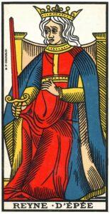 Esses detalhes não são suficientes, embora sejam mantidos como evidência para revelar plenamente os casamentos que fizemos. Mas não esqueçamos que o Tarot é o professor, estamos aprendendo constantemente. Cada Rei e Rainha, por exemplo, manifesta ao mesmo tempo um tipo psicológico, um herói histórico e outras encarnações/representações da mesma marca energética. Observemos as alianças que o Tarô nos mostra; Vejamos as associações, os tipos de casamento que nos cercam. As alianças eficazes nada mais são do que aquelas que nos permitem combinar as vantagens e as insuficiências de dois companheiros. Com qual personagem você se identifica? Com qual você gostaria de se parecer? Seja junguiano: qual é o seu animus ou anima? Qual é o parceiro que vai trazer o que está faltando ou vice-versa? O Tarot está mostrando isso para você. E através deste jogo temos acesso mais profundo à marca de energia… sem esquecer que as marcas de energia podem ser combinadas. Você pode ser um pequeno Rei de Ouro, um pequeno Rei de Bastão e também às vezes Rainha de Copas e às vezes Rainha de Espadas. Admiremos aqui as combinações e permutações de nosso modelo do universo, o Tarô de Marselha.