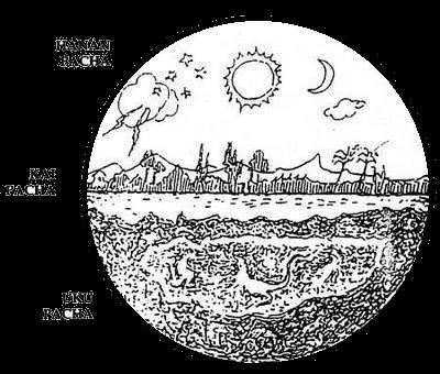 Uku Pacha, o mundo passado e inferior. Todos os seres vivos vinham deste lugar antes de ter o direito de nascer na terra. Também é o destino dos seres humanos que morrem em erro ou desgraça. A regra para não retornar a Uku Pacha era bem simples, sintetizada na máxima: “ama sua, ama llulla, ama chella” (Não roube, não minta, não seja preguiçoso).
