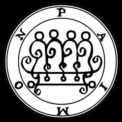 Este espírito pode ensinar todas as artes, ciências e filosofias, além de coisas secretas. Descobre qualquer coisa que esteja sobre a terra ou sob as águas; e o que a mente é, e onde ela se encontra; ou algum outro desejo que o magista queira saber. Ele concede títulos e confirma os mesmos. Ele concede bons Familiares tanto como pode ensinar quaisquer artes. Deve ser esperado pelo oeste. É da ordem das Dominações. Chefia 200 legiões de espíritos, sendo parte deles da ordem dos anjos, e da outra das Potestades. Agora se quiseres chamar Paimon sozinho, deverá lhe fazer alguma oferenda; e atende por meio de dois reis chamados LABAL e ABALIM, e também por outros espíritos que sejam da ordem de Potestades, junto com 25 legiões. E aqueles espíritos que lhe são sujeitos não estão sempre com ele a menos que o magista os obrigue a isto. Seu selo é este que deve ser preparado como um selo antes do chamá-lo, etc.