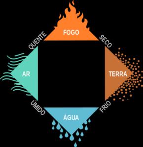 A água é fria e úmida; A terra é fria e seca; O ar é quente e úmido; e o fogo é quente e seco. Este conceito tornou-se a base sobre a qual os alquimistas ocidentais basearam suas teorias e práticas.