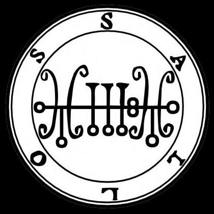 O décimo nono espírito é Sallos, Saleos, ou Zaleos. É um duque grande e poderoso, e surge na forma de um galante equitador sobre um crocodilo, com uma coroa ducal em sua cabeça, e com um ar pacífico. Ele causa o amor das mulheres aos homens, e dos homens às mulheres; governa 30 legiões de espíritos. Seu selo é este: