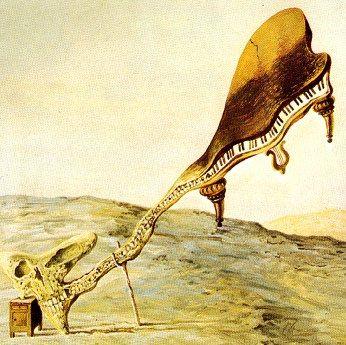 Vamos dar uma espiada em algumas das imagens de Dalí que nasceram sob o efeito desse Paranoia Crítica. Imagine se fosse algo como sonhar acordado, só que conscientemente conduzido por um olhar paranoico para o mundo ao redor. No nível básico é como brincar de olhar para as nuvens, procurando ver neles cavaleiros, gigantes, aquelas mulheres boazuda e outras figuras fantásticas. Já os praticantes mais avançados podem se deliciar ao decifrar as complexidades da estática da televisão, como um cientista decifrando o código da vida. Da mesma forma, podem-se fazer exercícios simples olhando fixamente para manchas de tinta, desenhos rabiscados ou padrões no mármore até que alguma forma ou forma emergir do caos. Quem sabe, talvez você veja mais do que esteja lá, ou talvez você esteja vendo de verdade pela primeira vez.