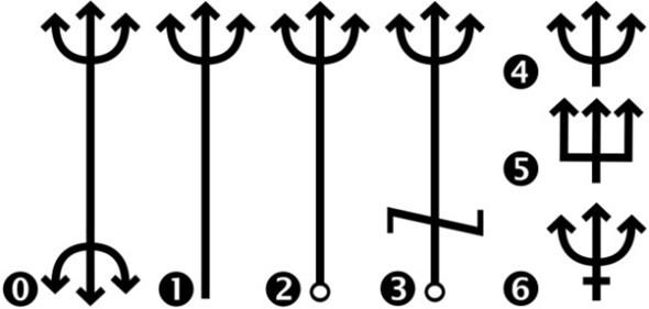 Observe atentamente as imagens abaixo para entender o significado dos diferentes formatos dos tridentes: