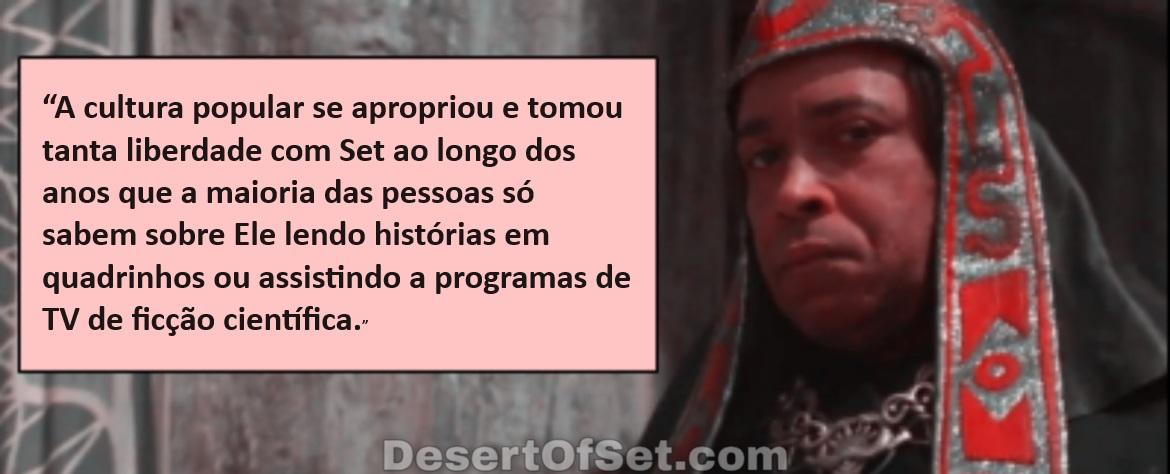 Às vezes, quando as pessoas descobrem que acredito em Set, elas me perguntam como é possível que eu acredite em um “personagem fictício” do Doctor Who ou da Marvel Comics. De vez em quando, até me perguntam se acho que sou algum tipo de vampiro. Isso realmente me irrita, mas acho que não posso culpar as pessoas que fazem essas perguntas. A cultura popular se apropriou de Set e tomou tanta liberdade com Ele ao longo dos anos que a maioria das pessoas só sabem sobre Ele lendo histórias em quadrinhos ou assistindo a programas de TV de ficção científica. Inevitavelmente, Set é sempre apresentado como vilão nessas e em outras mídias populares, e isso agrava o problema, levando as pessoas a pensar que sou algum tipo de “adorador do diabo”. (Não ajuda o fato de Set ser tão frequentemente apropriado em estratégias de legitimação satanista, em que o satanismo é reconceituado como algo “pré-cristão”—mas trataremos dessa lata de vermes em outro dia).