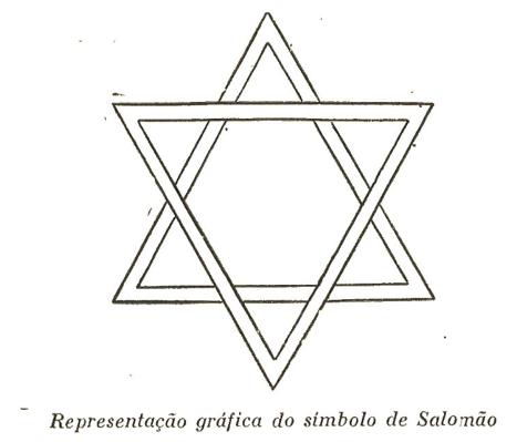 O GRANDE SÍMBOLO DE SALOMÃO — representado por dois triângulos figurando os dois anciãos da Kaballah, com o significado de: macrocosmo e microcosmo, ou ainda: o Deus de Luz e o Deus de reflexos; o Deus misericordioso e o Deus vingativo; o Jeová branco e o Jeová preto.
