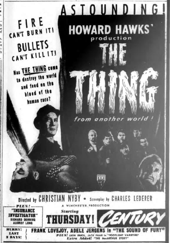 Em 1951, o grande Howard Hawks decidiu fazer uma adaptação cinematográfica de “Who Goes There?”, que foi rebatizada de O Monstro do Ártico. Esse foi o primeiro do que mais tarde seria chamado de filmes de “terror atômico”, em que a humanidade é ameaçada por animais radioativos gigantes, experimentos científicos malucos ou comunistas do espaço sideral. Por alguma razão, o cenário da história de Campbell foi trocado da Antártica para o Polo Norte, e o alienígena metamorfo foi reconceitualizado como um humanoide bebedor de sangue feito inteiramente de matéria vegetal. (Um personagem de fato se refere a ele como uma “supercenoura”.) Apesar dessas mudanças drásticas, O Monstro do Ártico é um dos melhores filmes de ficção científica/horror já feitos. Tem personagens adoráveis e bem-humorados, alguns diálogos intensos no ritmo de metralhadoras e várias cenas de suspense que ainda se mantêm atuais. O filme influenciou toda uma geração de cineastas, inclusive John Carpenter, que gostou tanto do filme que fez com que seus personagens o assistissem na TV em Halloween (1978).