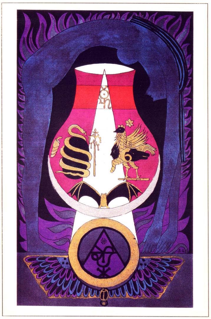 Era na fusão das energias solar e lunar que residia o segredo da vida e da regeneração. O sangue é a vida, mas a bebida dos ritos sabáticos não era o sangue vermelho da vida animal que corria pelas veias do corpo vivo, mas o “prana” ou “ojas” essencial armazenado nos centros secretos de energia que brotavam em certas estações específicas. O Rito do Sabá envolvia o conhecimento dessas estações, bem como dos centros onde o Bindu primordial residia antes de sua concentração na forma de carne. Era para transformar esse sangue ou essência sobre si mesmo, de modo que pudesse se transformar em corpos imateriais, que o vinum sabbati era preparado e embebido. Era de fato a matriz de toda criação espiritual ou — melhor ainda — criação na forma de espírito; um processo mágico e não religioso.